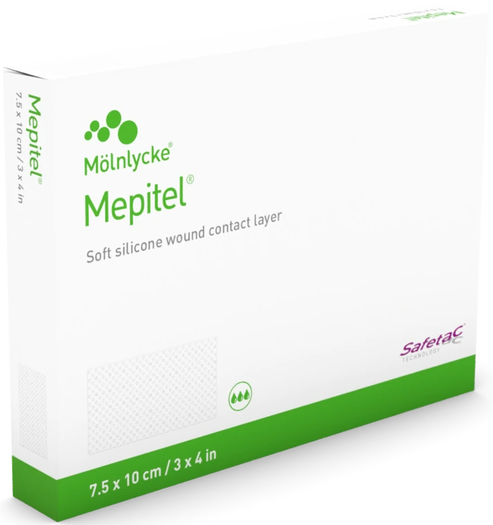 Mepitel je primarna obloga v obliki mrežice, obojestransko prevlečena s slojem mehkega silikona. Odprta struktura omogoča optimalen prenos izločka v sekundarno oblogo in preprosto izvedbo lokalnega zdravljenja. Obloga Mepitel lahko na rani ostane 14 dni3,15 in se ne izsuši, kar sicer lahko povzroči poškodbe in bolečine. Tako lahko skupaj z vsemi prednostimi, ki jih nudi tehnologija Safetac, resnično zagotovite nemoteno16-21 celjenje rane in stroškovno učinkovitost. Obloga Mepitel zaščiti rano in kožo v njeni okolici ter preprečuje poškodbe rane in novonastalega tkiva4-8,14 hkrati pa tudi vraščanje tkiva v mrežico. Poleg tega preprečuje izločku prehod na kožo v okolici in s tem zmanjšuje tveganje za nastanek maceracije. Tako zmanjšuje bolečino pri prevezah10 , posledično pacient ni v stresu9 , izogne pa se mu tudi zdravstveno osebje. Mepitel ne pušča ostankov22 in ne drsi iz mesta nastavitve. S sekundarno oblogo se ne sprime. Možnosti alergij in draženja/iritacije kože so izredno nizke.