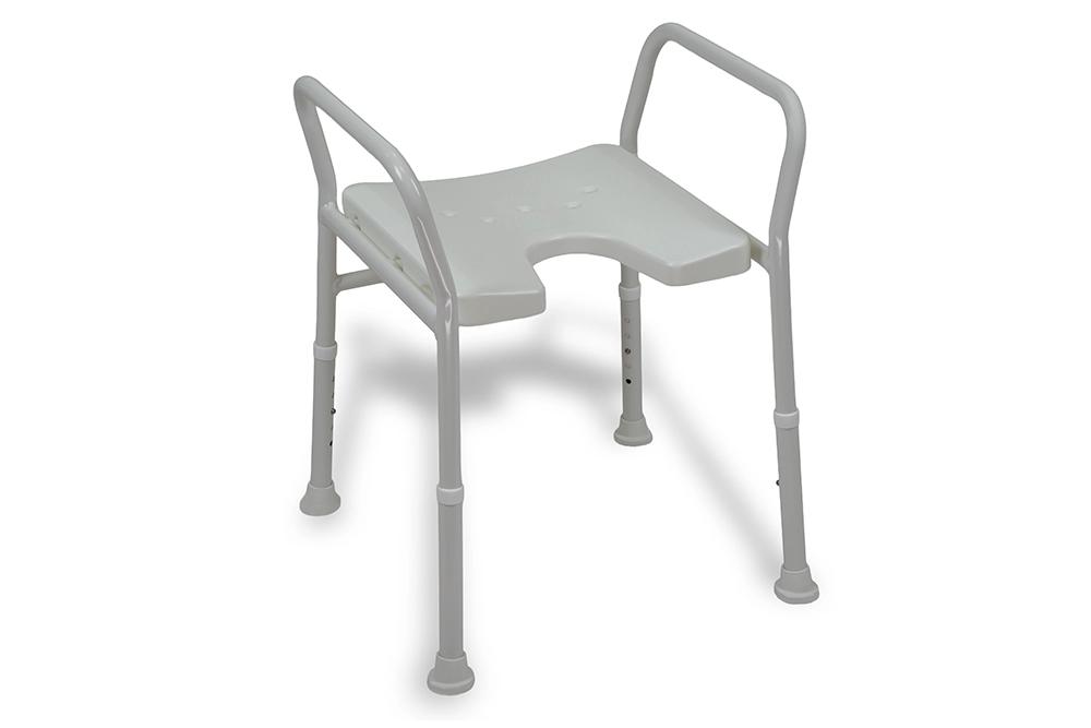 Stol za prhanje DS 130 z nastavljivo višino omogoča samostojno prhanje osebam z obolenji, pri katerih je prizadeta stabilnost trupa.